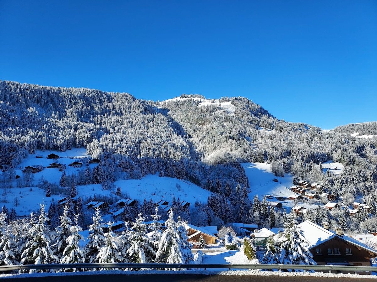 這間單間公寓位於阿拉維斯山脈美麗村莊Manigod的189 chemin du villard下方,坐落在面向Sulens山脈的典型Manigodin度假木屋中。獨立通道,有停車位。舒適的夏季和冬季。