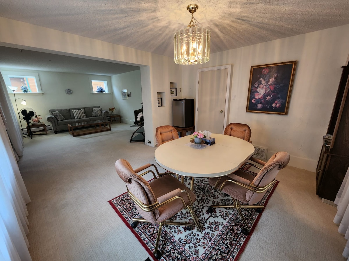 歡迎來到山區。 這間寬敞的私人套房位於市中心,距離市中心半個街區,位於我們新翻修的房源的下層。一間配有全套浴室的雙人床臥室,可供2人舒適入住。獨立入口和免費的路邊停車位。房源設有小廚房,備有迷你冰箱、水壺、烤麵包機和微波爐。