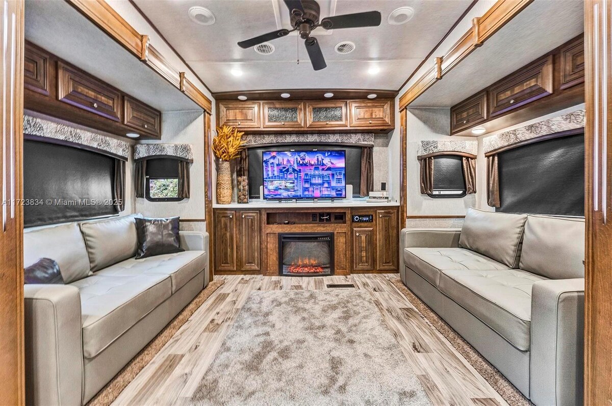 全新2024年房車。一間配有雙人床的主臥室、1間浴室、一張餐桌,可轉換為一個人和一個孩子(取決於人的大小)的額外床位、個人停車位、入口和Wi-Fi。靠近Sawgrass Mall和Amerant Bank現場競技場。