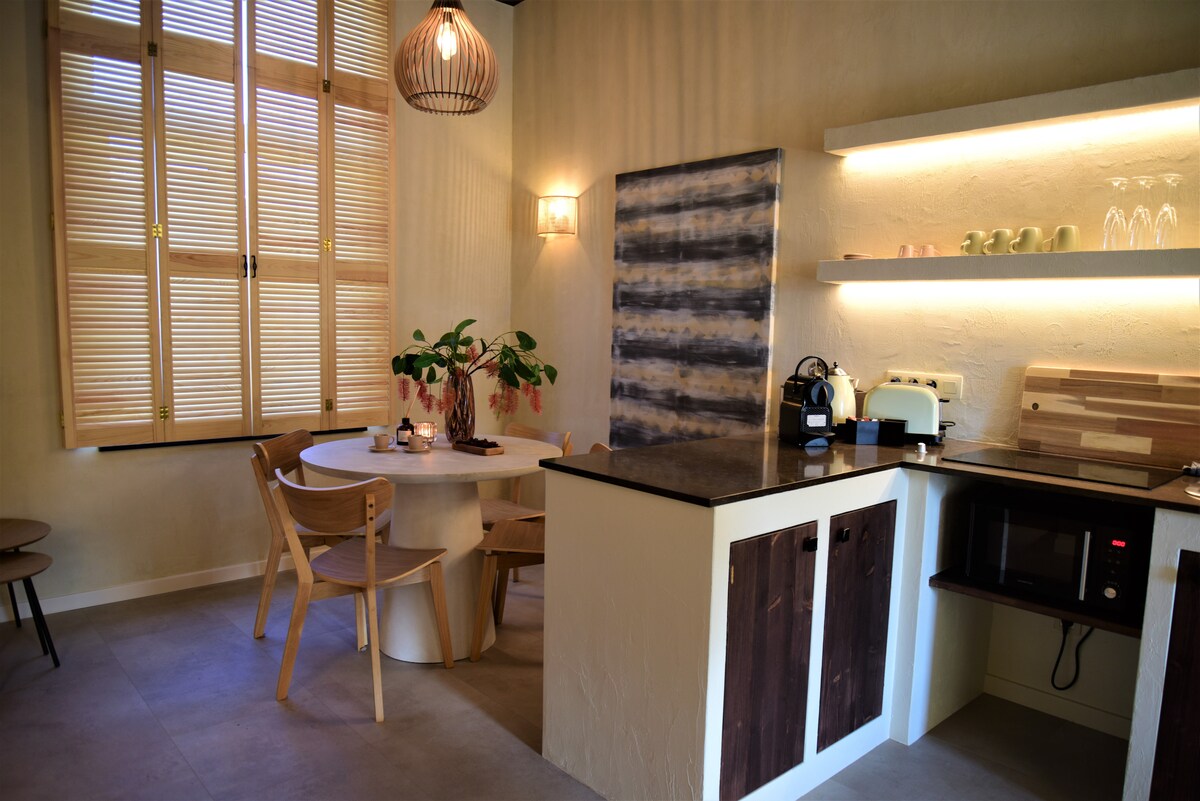 "River View Deluxe Suite with Sunset Terrace" This 45m² 4th-floor sanctuary blends luxury with Antwerp's most breathtaking views: Your Private Retreat Includes: 🌅 Private terrace with Schelde river sunset vistas 🛏️ Separate bedroom with queen box-spring bed 💻 Dedicated office space for remote work 🍳 Fully-equipped kitchen with Nespresso Premium Amenities: • Walk-in rain shower with Rituals toiletries • Smart TV & high-speed WiFi • Elevator access (or stairs for exercise)