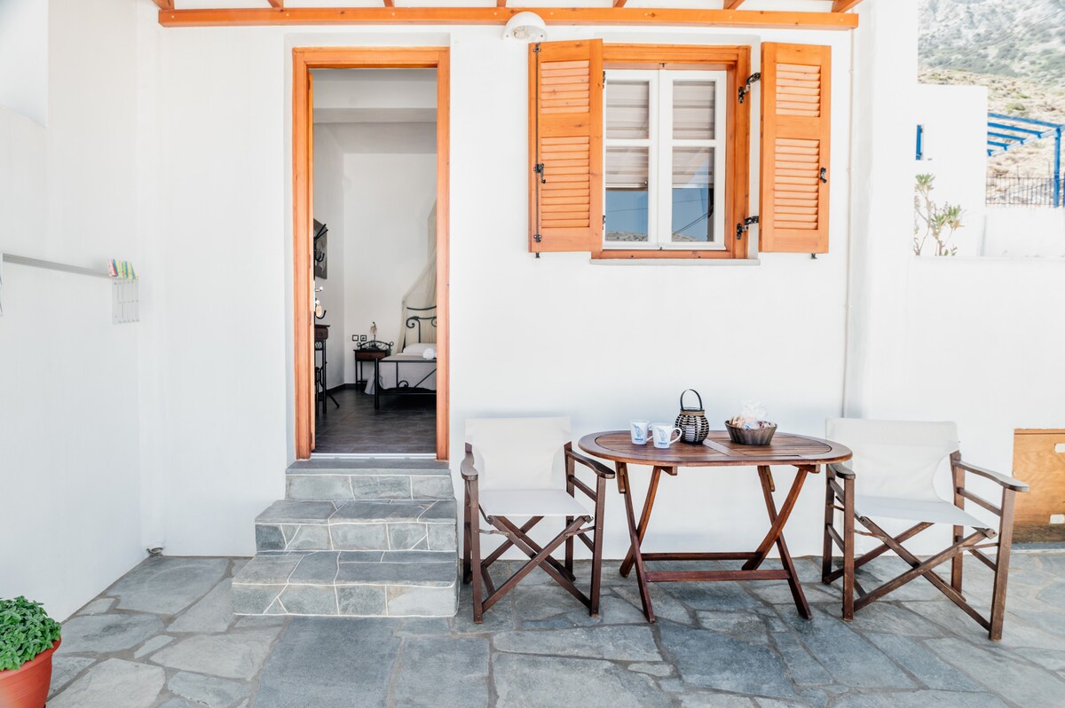 Welcome to relax in our traditional, stone made, calm, stylish cottage. You will enjoy an unforgettable vacation in a countryside house offering panoramic view , sea view, fruit trees, plants and vines in a 1100 m2 garden, only 7-8 mins walking from the centre of the capital Apollonia. Nearest restaurant is about 150 metres away. The couple of owners living in the same 1100 m2 yard, with extensive travel experience in all over the world, will offer you the famous Greek traditional hospitality.
