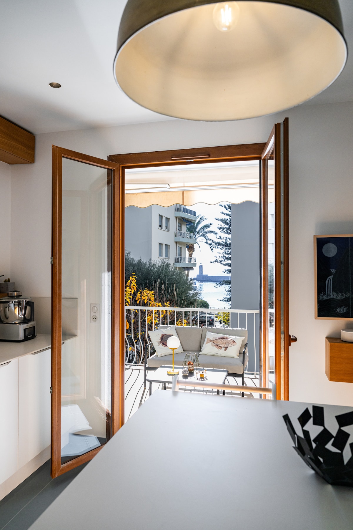 « SEAVIEWS BY JENNI MENTON »présente: Superbe 2 Pièces NEUF en Front de Mer, sur la Promenade du Soleil. 50 m2 de design,large terrasse de 18m2, vue mer comme sur un bateau de tout l'appartement. Conçu pour le confort de 4 personnes. Décoration très recherchée,matériaux et équipements haut de gamme. GARAGE FERMÉ* ASCENSEUR CLIM SMART TV INTERNET ILLIMITÉ HAUT DÉBIT ENCEINTE BLUETOOTH BOSE A quelques minutes à pied de tous les commerces et activités. Bus en bas de la résidence, gare à pied.