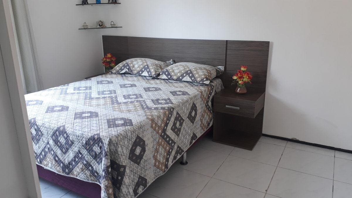 Quarto com ar condicionado, em casa de condominio fechado, piscina, arborizado, tendo próximos shopping, cafés, padarias, restaurantes. distância cerca de 25KM de Fortaleza.