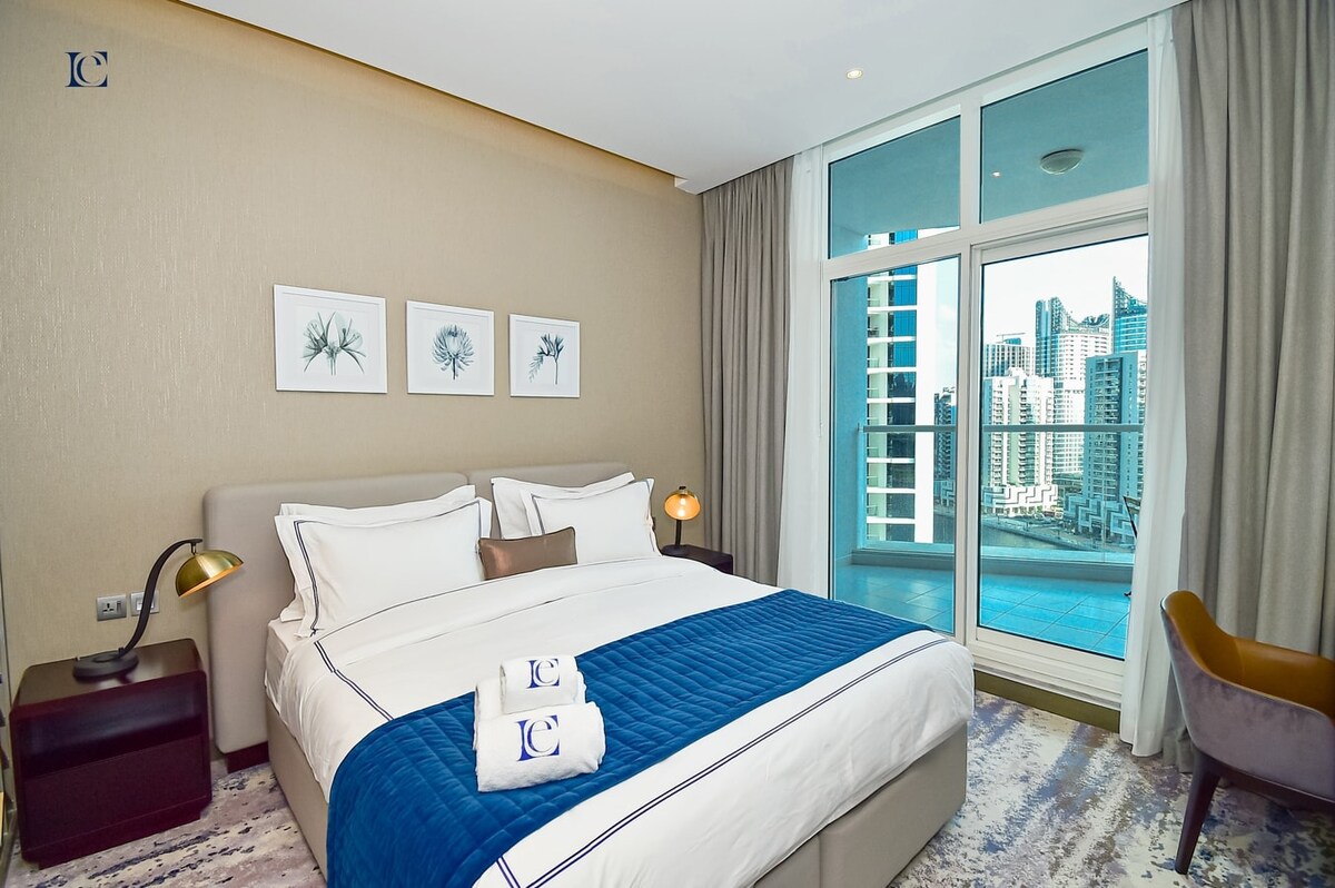 Experience luxury in this stunning 3BR + maid’s room apartment at DAMAC Waves, Dubai Marina. Enjoy serene marina views, 2 king beds + 1 twin , a maid room and a modern kitchen, fast WiFi, pool, and gym. Walk to JBR Beach, top restaurants, and vibrant nightlife. Perfect for families and groups, offering comfort, style, and an unforgettable Dubai stay.