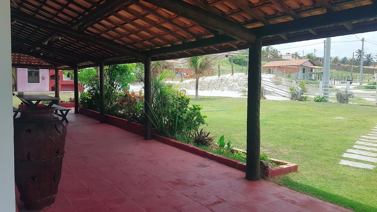 Linda casa na Praia de Quixaba com ampla vista para o mar, varanda, churrasqueira, sala, sala de jantar, 2 quartos e banheiro. A menos 500m da praia. Ideal para 8 pessoas.