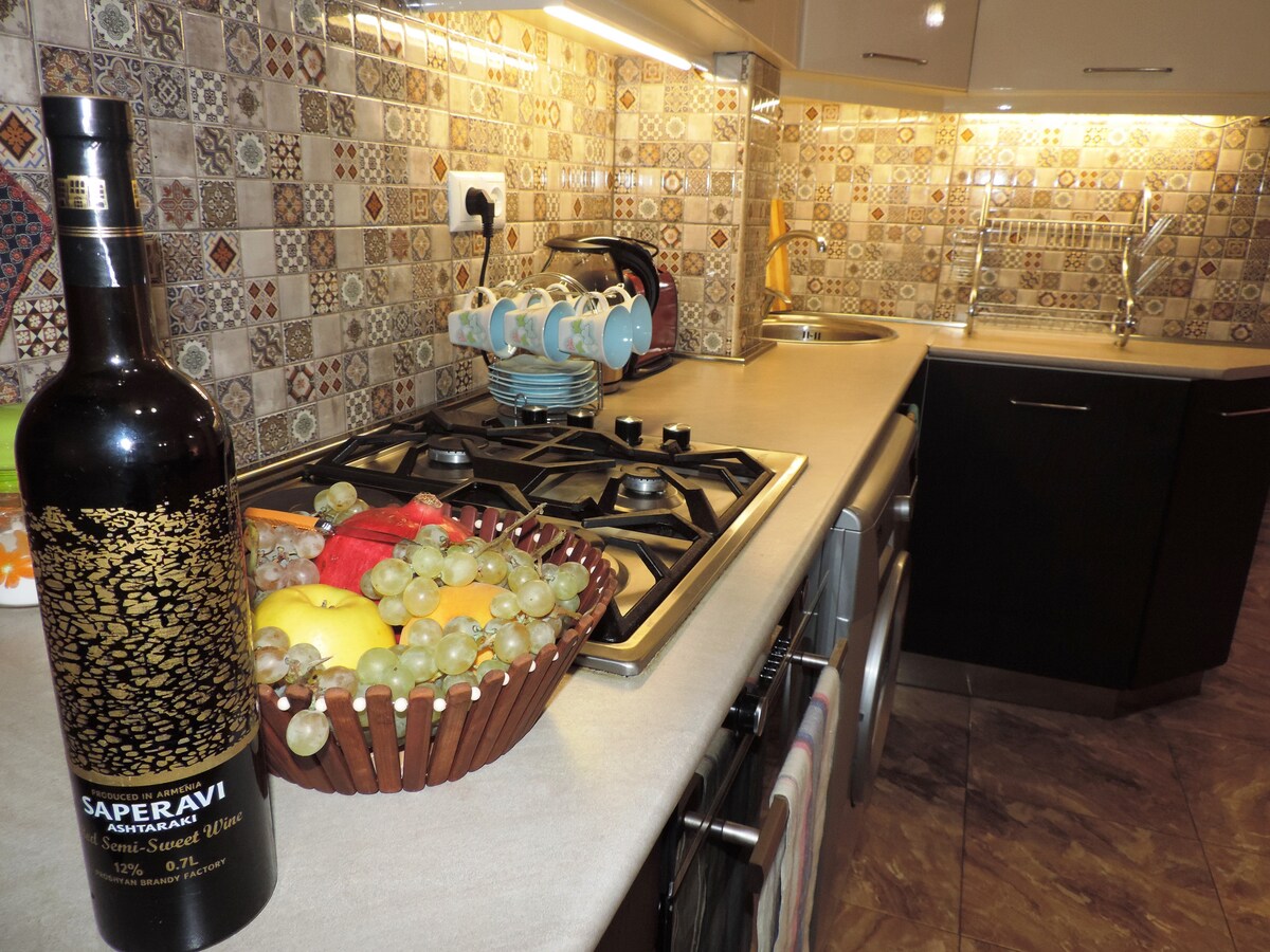 點擊右上角的「」,將我的房源♥新增至心願單: ◦ 24小時自助入住 ◦ 15/15樓 ◦ 63平方公尺 ◦ 陽臺和美景 ◦ 馬歇爾音響系統 ♫♫ ◦ 設計師製作和家具 ◦ 電視、WIFI ☆ 「這個房源是必住的地方!」 設備◦齊全的廚房 ☆ 漂亮的街區,在Komitas和Manument之間。咖啡館和超市,晚上在當地公園漫步。 乘坐計程車前往市中心需要7分鐘,步行25分鐘即可抵達瀑布市中心。