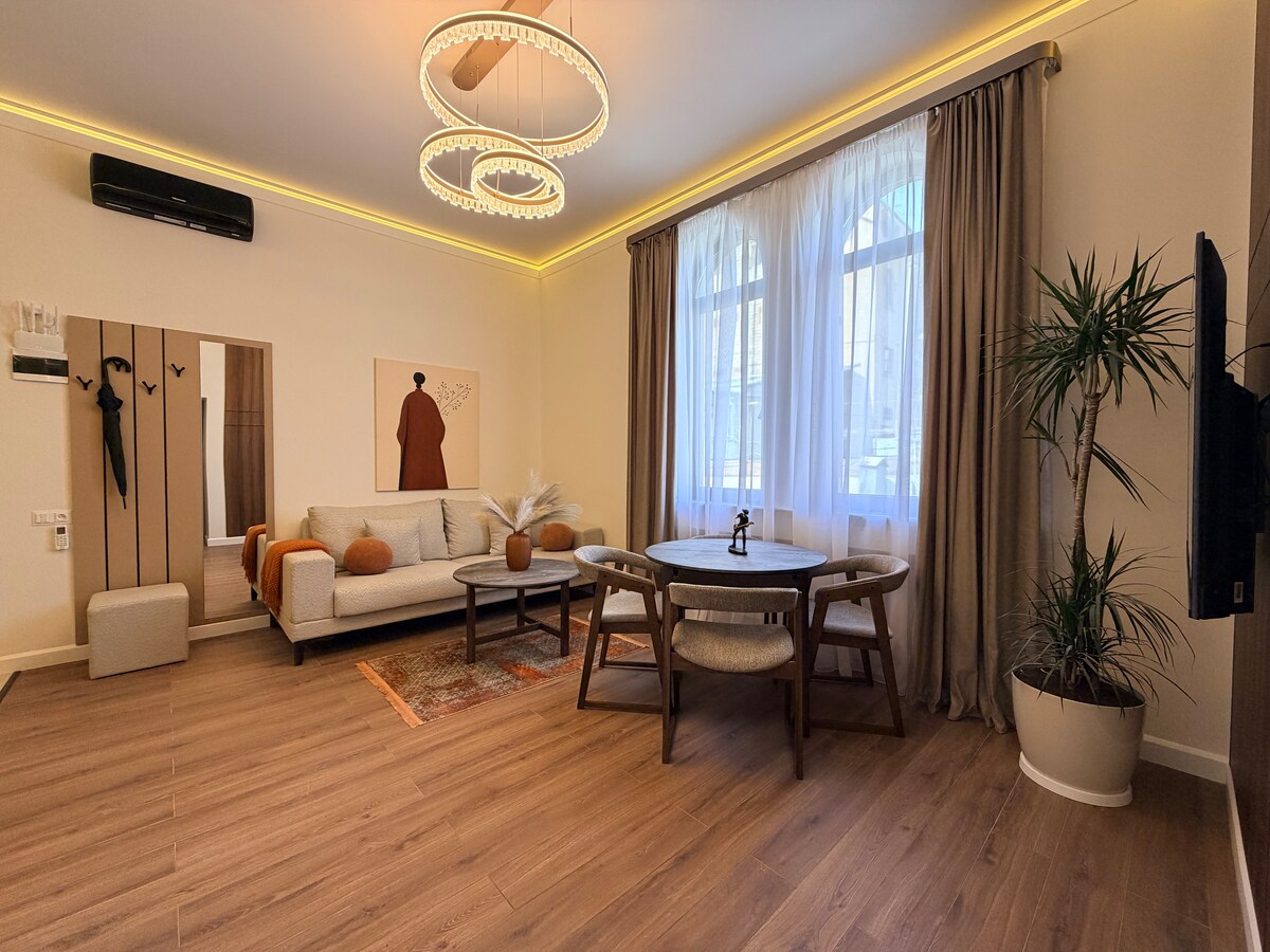 位於一樓的舒適公寓,配備現代化設備與服務,可欣賞亞美尼亞的壯麗城市景觀,靠近圖莫公園、基耶維安橋、哈馬利爾音樂廳、種族滅絕紀念碑和共和國廣場。 這間公寓設有明亮寬敞的客廳和臥室,配有沙發床、設備齊全的廚房、洗衣房和 WiFi。 步行即可抵達商店、商場、餐廳和咖啡廳,非常適合放鬆和提高生產力。 體驗葉里溫的魅力,頂級景點就在你的門口!
