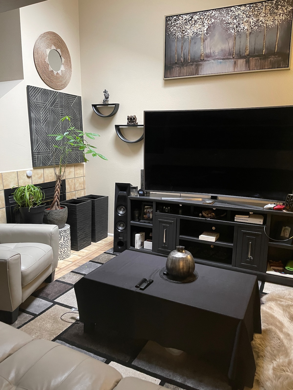 Come enjoy all comfort and privacy of your own home in the upper level of my 2 bedroom living space. Both bedrooms are equipped with wall mounted television sets with On-Demand and several channels to choose from, one room has a King size bed, the other has a Queen size bed and a work area with plenty of lighting, perfect spot for a laptop. Living room has a huge comfortable sectional that is hard not to doze off in while enjoying the 60" ceiling mounted television.