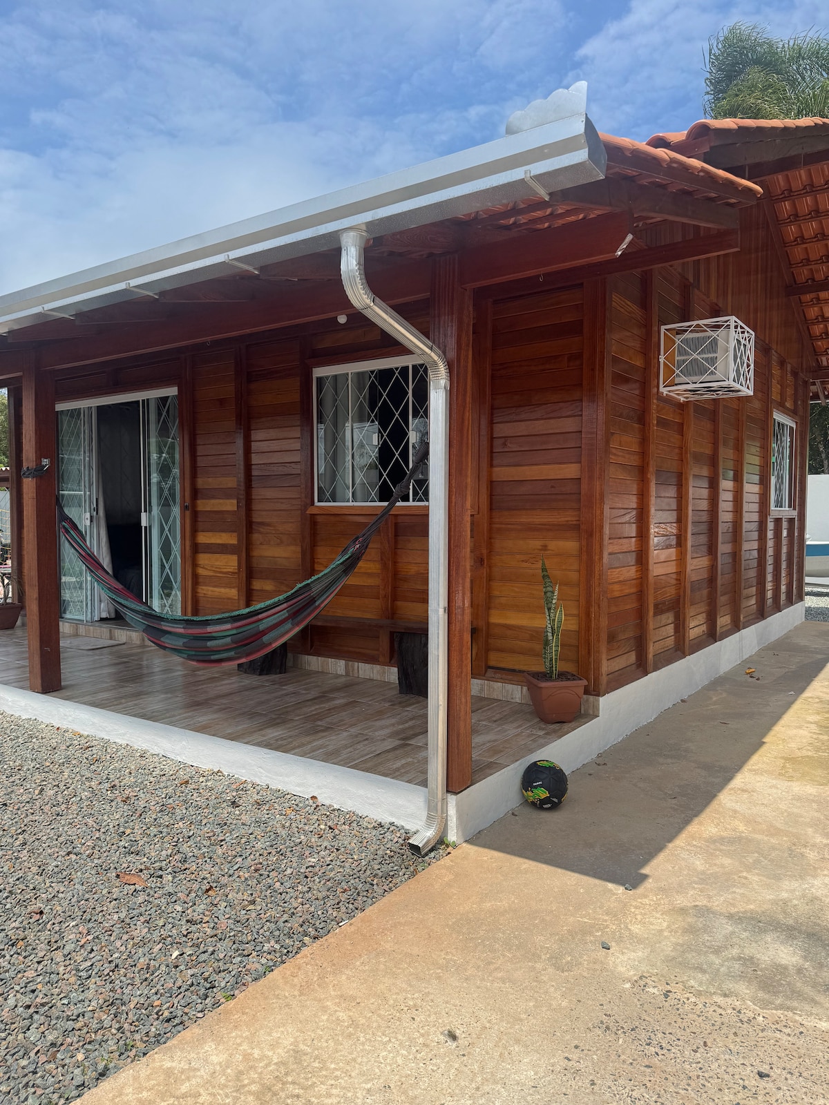 Imagine waking up to birdsong, gathering fresh eggs straight from the nest, and ending the day around a crackling fire under a sky stitched with stars ✨ Our cozy little retreat welcomes up to 5 guests in 2 comfortable bedrooms. It offers a fully equipped kitchen, a private bathroom, and a deck for meals overlooking the garden and mountains ⛰️ 🚗 Free on-site parking and a bus stop right in front 🚌 📍 Next to BR-101, 5 minutes from Expoville and 12 minutes from downtown Joinville.