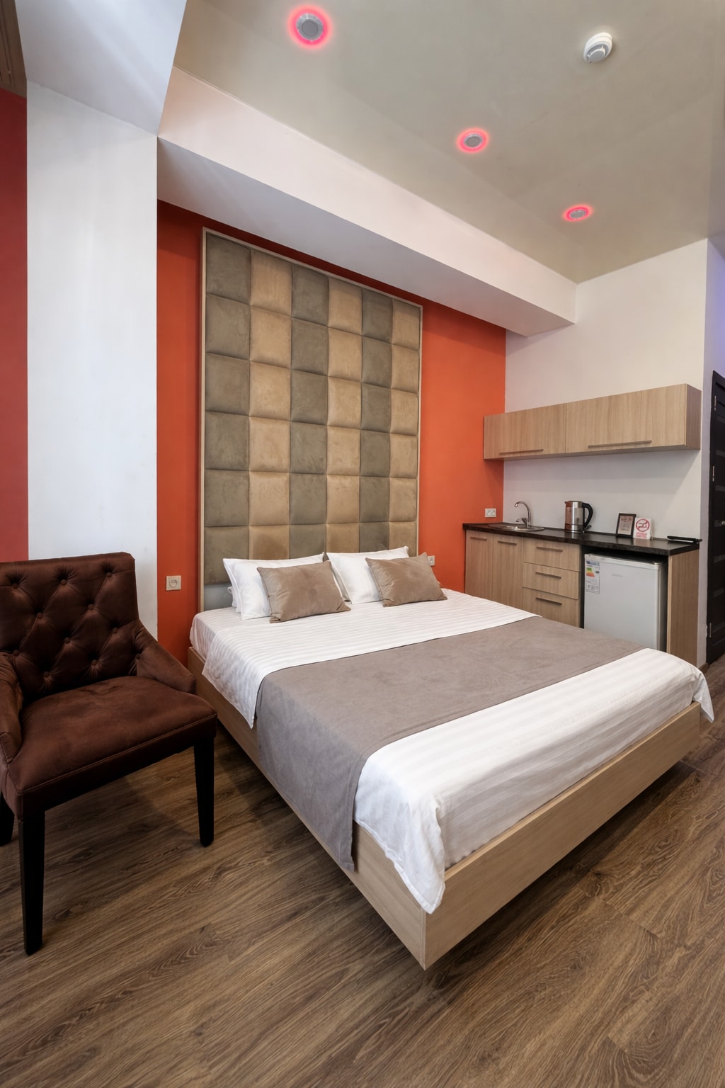 飯店內非常乾淨、明亮的房間。 所有房間都配備了空調系統。 設計時尚的房間非常舒適,配備了所有必需品。 這個房間可供兩人入住。 有獨立和一張大型(家庭)牀可供選擇。 飯店距離市中心不遠。