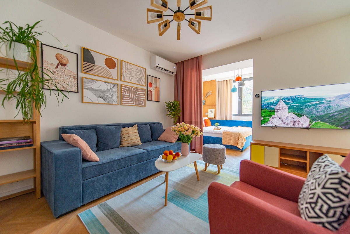 新重建的溫馨溫馨公寓,位於埃裏溫市中心的獨特位置。 它位於一棟新建建築的歌劇院附近,步行即可抵達所有地標。 這間全新的公寓非常舒適和時尚。 它輕鬆、高天花板,配備了一切設備,讓您感覺像在自己家裡或優質飯店一樣。 配有WiFi、平面電視、冰箱、洗衣機和烘乾機、洗碗機、烤箱、微波爐、烤麵包機、熨鬥等...