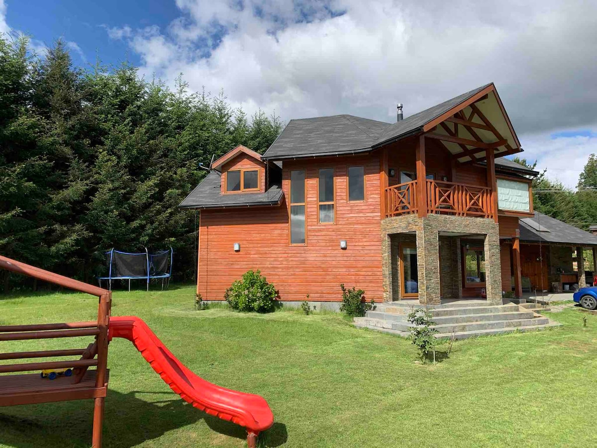 設備齊全的舒適房屋,地理位置優越,四周環繞著田野,日落美景,靠近河流和城市。它位於一個非常安靜的區域,您可以聽到寧靜和鳥兒的歌聲。 有充足的戶外空間可供共享,配有 WiFi、電視、洗衣房、木柴暖氣和健身房等。 它位於 S-20 公路上,距離特木科僅 20 分鐘車程。距離新帝國 (Nva imperial) 17 公里,距離加爾瓦里諾 (Galvarino) 27 公里。