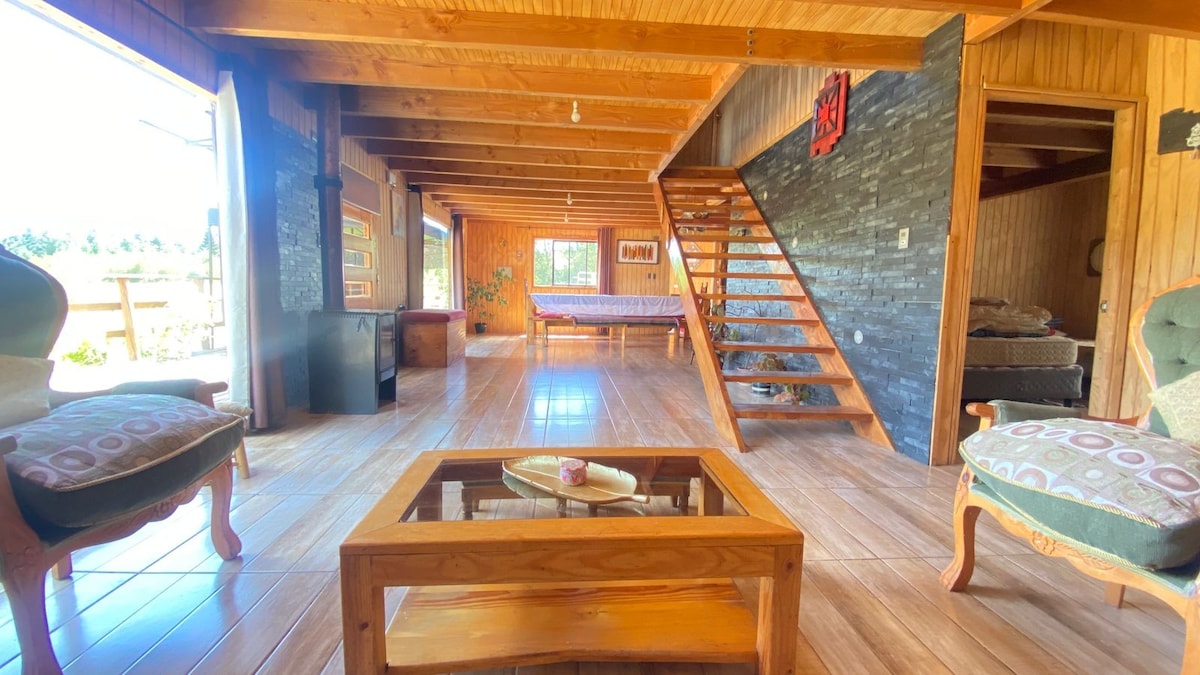 Desconectate de tus preocupaciones en este espacio amplio y sereno Casa de campo ubicada a 16 km de Villarrica, 13 km de asfalto y 3 de ripio, está a 20 min de Lican Ray y 45 min de Panguipulli. Cuenta con una cama King, dos camas de 1 plaza y media y un sofá cama, y WiFi por starlink además tiene una piscina de 7×3 metros. Son 60 ha para disfrutar con total privacidad, dónde podrás escuchar el canto de las aves y si tienes suerte y caminas por el bosque podrás ver aves rapaces y zorros.