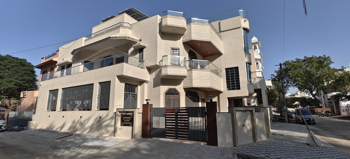 步行即可抵達齋浦爾最熱門的地方、WTP和Gaurav Tower。 距離賈浦爾機場僅3.5公里,設有獨立入口、獨立浴室、冰箱/烤麵包機/水壺、工作空間、陽臺和空調。房間內有木地板,提供溫暖舒適的體驗。為了您的安全,我們會保持房間消毒。 附近有許多餐廳提供午餐和晚餐。 我們會盡力提供個人化的關懷和溫馨的款待,而不會侵犯您的隱私。