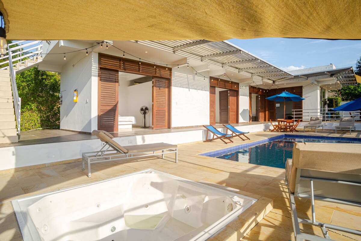 Casa vacacional cerca de Anapoima, con una de las mejores vistas de Colombia. Ideal para descansar o hacer teletrabajo rodeado de naturaleza. Ubicada en un conjunto cerrado y seguro, cuenta con: 🏊♀️ Piscina privada con vista panorámica 🛁 Jacuzzi con agua caliente 📶 Wifi de alta velocidad (ideal para teletrabajo) 📺 Televisión nacional y Netflix 🌬️ Ventiladores 🔥 BBQ a gas y zona exterior 🌞 Sillas para tomar el sol 🌳 Entorno tranquilo y privado 🐾 Pet friendly
