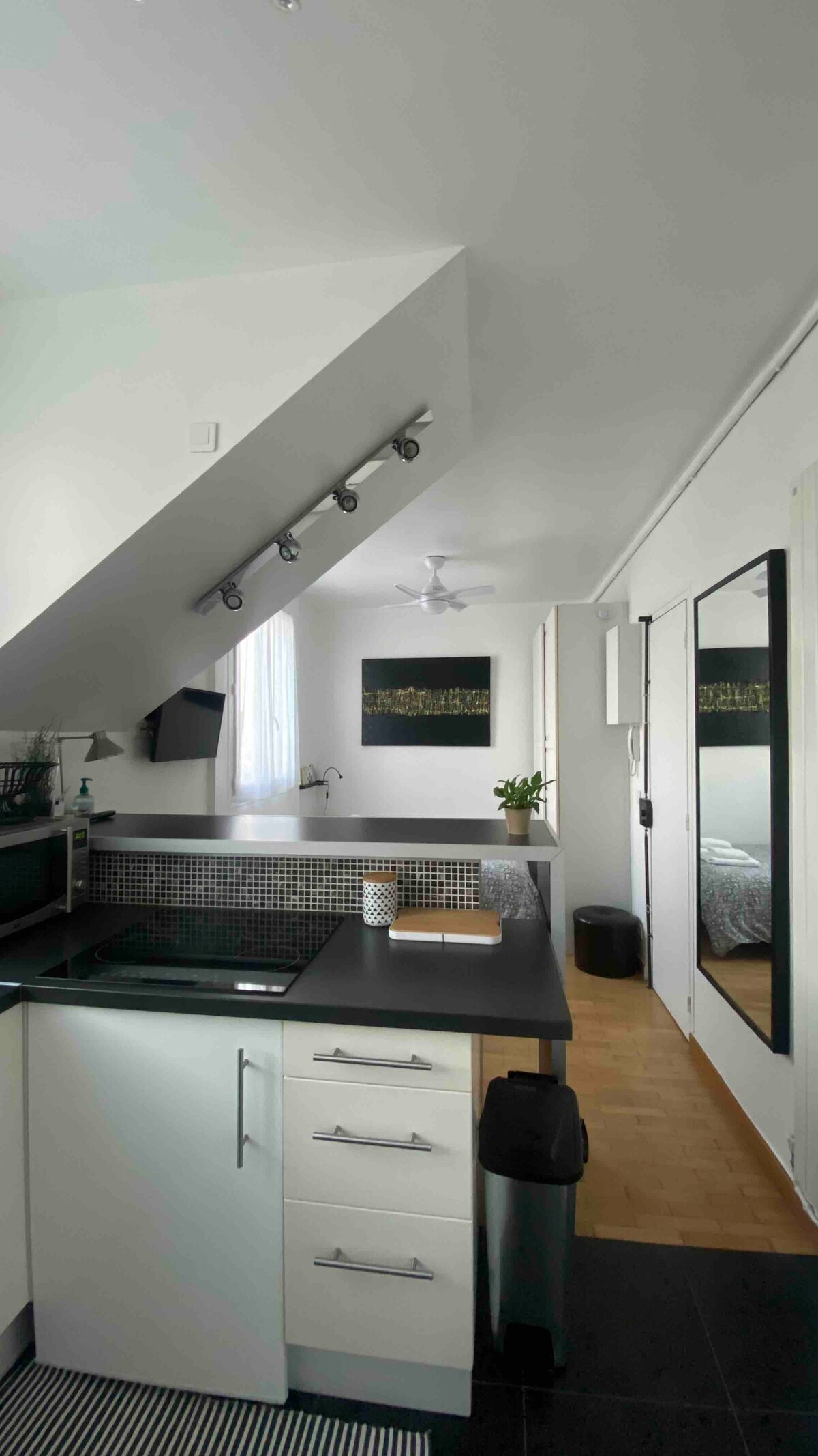 Studio de 20m2 au calme. Situé aux portes de Paris. Proche du stade de France et du marché aux Puces. Une pièce de vie avec cuisine aménagée. Une chambre/coin nuit avec armoire de rangement. Salle de bain avec toilettes (sanibroyeur). Il s'agit d'un petit espace que nous avons essayé de rendre agréable à un prix accessible. N'hésitez pas à nous solliciter pour une arrivée anticipée ou un départ tardif. Les horaires peuvent être élargis pour faciliter et rendre plus confortable votre séjour.