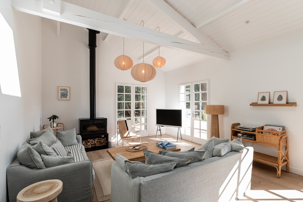 建築師別墅提供10張床,空調。 步行不到5分鐘即可抵達當地商店和巴辛達爾卡雄(Bassin d 'Arcachon)海灘(Grand Piquey村)。 開車5分鐘即可抵達海灘 (距離Cap Ferret市中心15分鐘路程) 5月15日至9月15日期間的15公尺溫水泳池,具體取決於天氣和天氣狀況(在此期間之前和之後,會被冬季和/或遮蔽) 真正的綠色繭