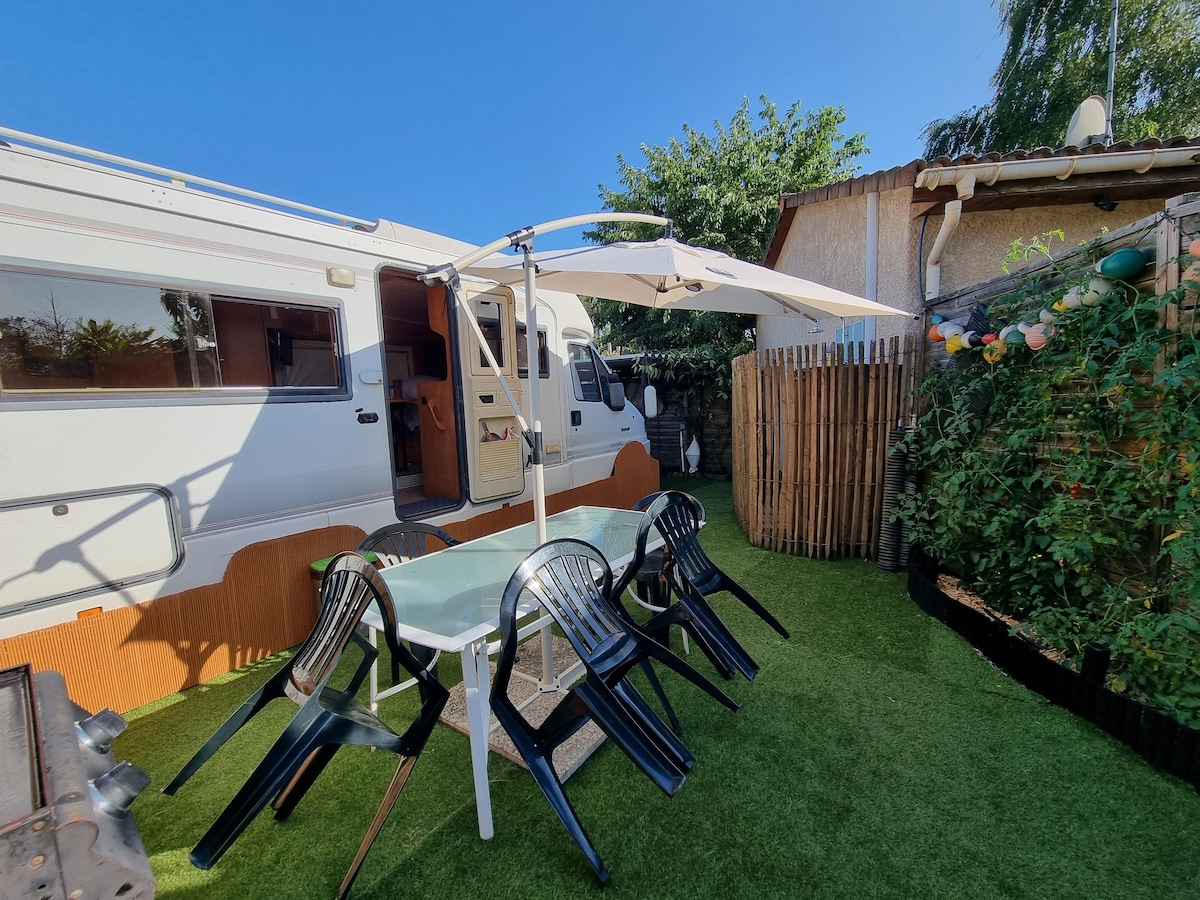 探索這輛配備空調(夏季)和暖氣(冬季)的精美全新裝修大篷車的魅力和復古面 配有大浴室、廁所和大淋浴間。 設備齊全的廚房 非常大露臺, 9米x 3米,完全遮蔽和封閉。 房源靠近森林,泳池10公尺乘5公尺。 遊泳池於10月1日至3月31日關閉。 靠近商店和海灘。 獨立大 篷車。可能性從LOC要求資訊的4天內減少