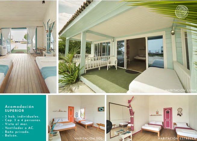 農村小屋,可供兩人入住(寬敞的私人陽臺和浴室)。在植被、黎明鳥歌和螃蟹的環境中安靜休息。從海灘步行6分鐘。 海上、皮劃艇之旅和紅樹林漫步、生態旅遊自行車之旅、前往聖貝納多島的旅程,以及生物發光浮遊生物中令人難以置信的遊泳體驗。 客艙費用包括早餐。