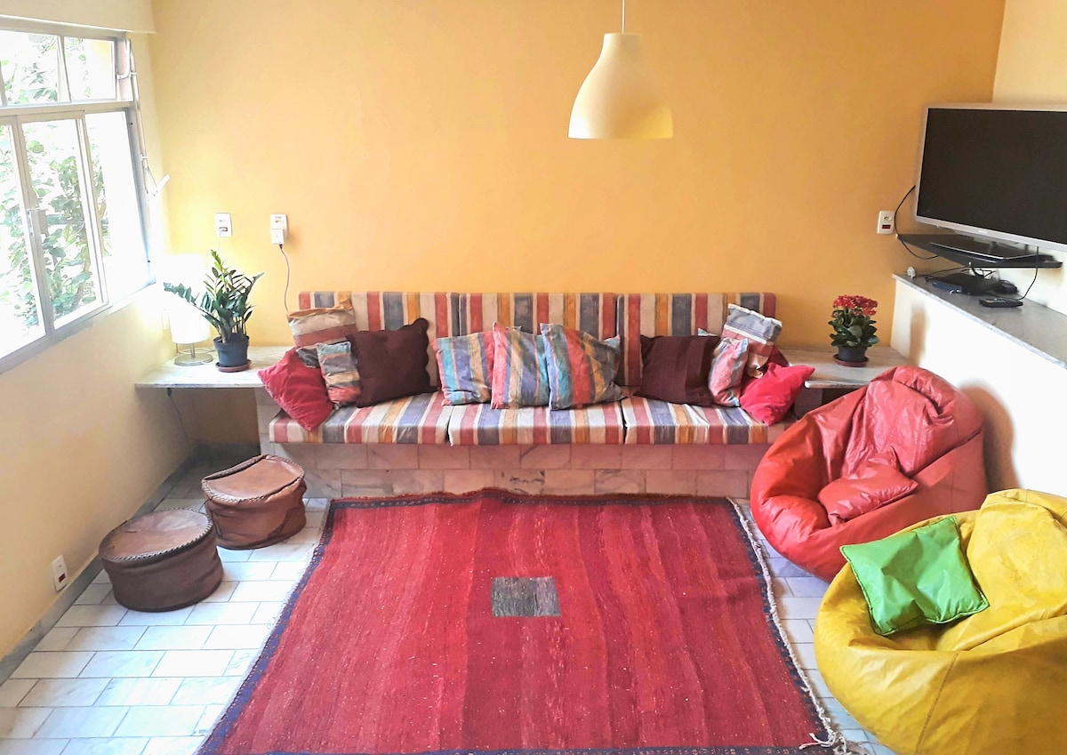 The guesthouse “CASA BABILÔNIA” is situated in the beautiful district Leme in the south of Rio de Janeiro. Due to its location on the way up to the Favela Babilônia, our guest house provides an exceptional ocean view. Breakfast inclueded on prices.