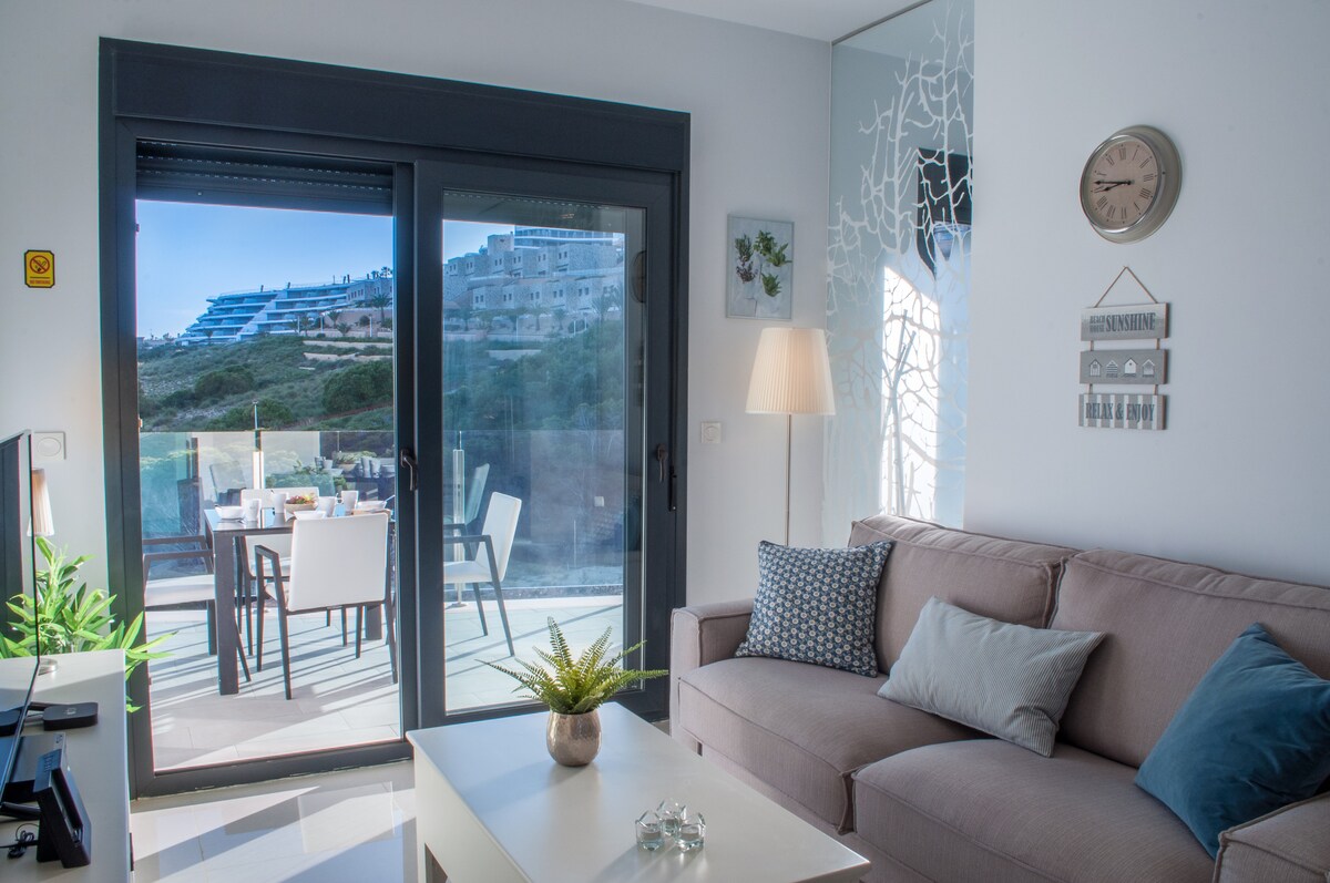 Moderno apartamento a 500 m de la playa con terraza privada y vistas al atardecer Disfruta de unas vacaciones perfectas en este apartamento de nueva construcción en Arenales del Sol, a tan solo 500 metros de la playa, cerca de todos los servicios.