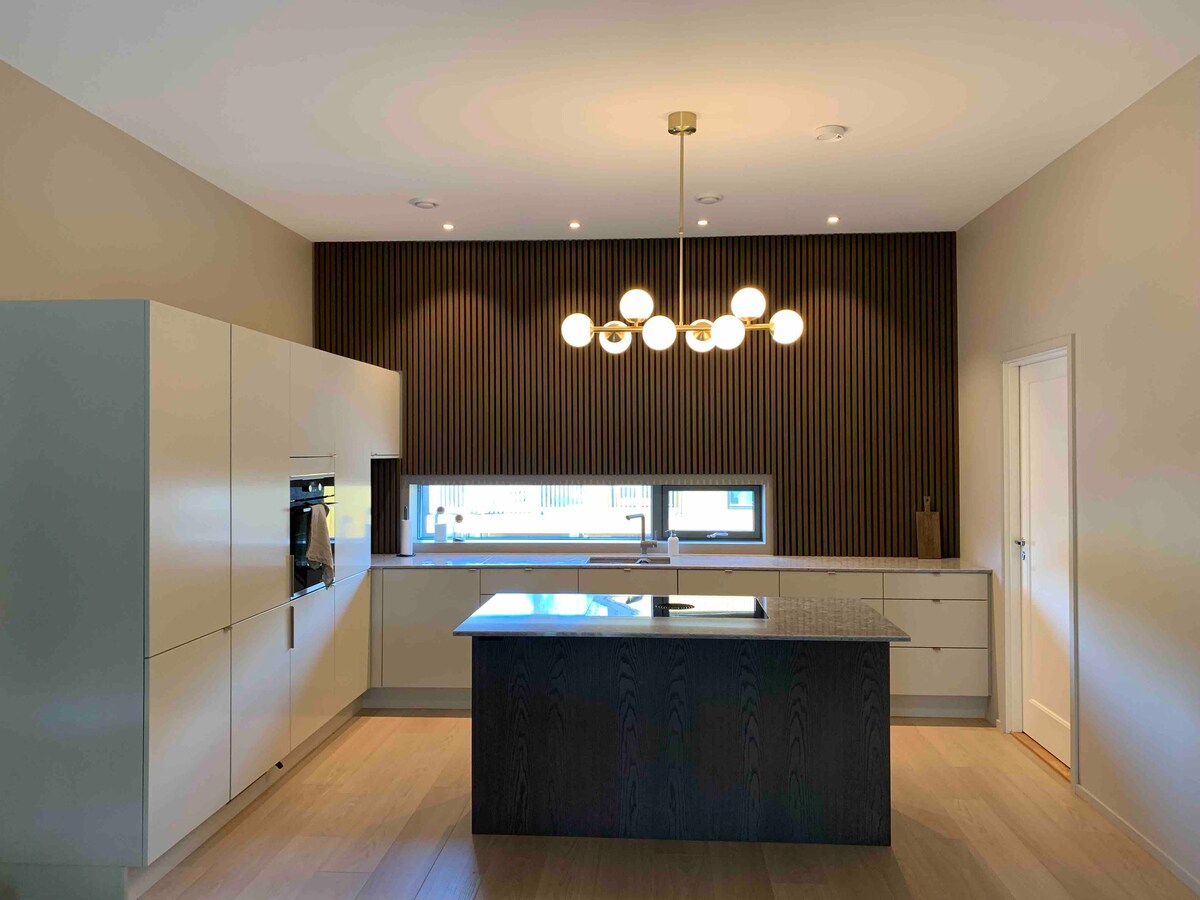 俯瞰Eydehavn的夢幻房源- 4間臥室、溫水泳池、電動車充電器、2個泊位和2個戶外客廳。 房子下方有巴士,只需15分鐘即可抵達Arendal 房子經過全新裝修,新照片不斷更新。害羞,沒有景觀。 來自HTH的大型新廚房,配有兩台洗碗機、咖啡機、來自水龍頭的碳酸和沸水、來自Røroshetta的配有餐盤的廚房島、酒櫃、大型餐桌( 8-10人)。烤箱+組合。 可入住8人,可根據需求提供額外床位。