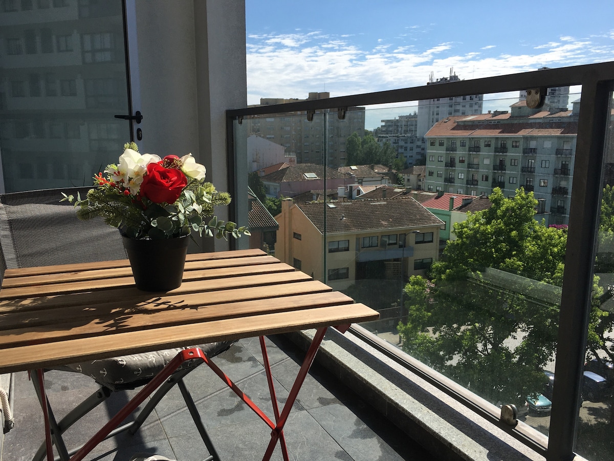 Enjoy the relaxing atmosphere inside this new apartment with two very sunny balconies over the city. In a duplex shape this 2 bedrooms apartment accommodates up to 4 people comfortably and it's located in a modern area of Porto. Conveniently located with supermarket, good bakery/pastry shop, many buses and metro nearby. Free private parking, fast Wifi in all areas, equipped kitchen, central heating, washing machine, dishwasher, comfortable double bed and 2 single beds. Ideal for families.