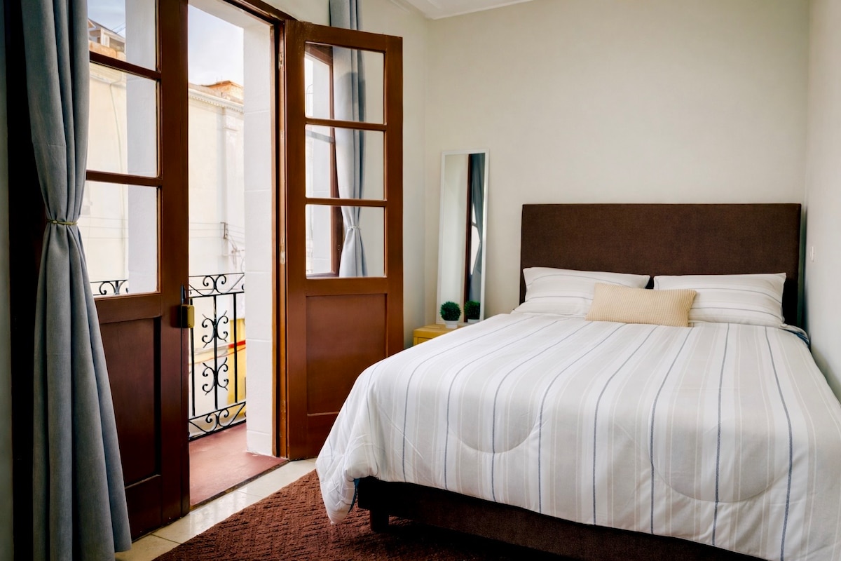 這間迷你公寓位於市中心,距離市內最好的餐廳和酒吧僅幾個街區。 專為提供最大的舒適和放鬆而設計,配有密封窗戶,可隔離街道噪音和灰塵。 地理位置優越,距離阿雷基帕大教堂僅兩個街區,距離聖卡塔琳娜修道院僅半個街區。您可以步行遊覽整個歷史中心。 光線充足,陽台上有個非常漂亮的遮陽傘。