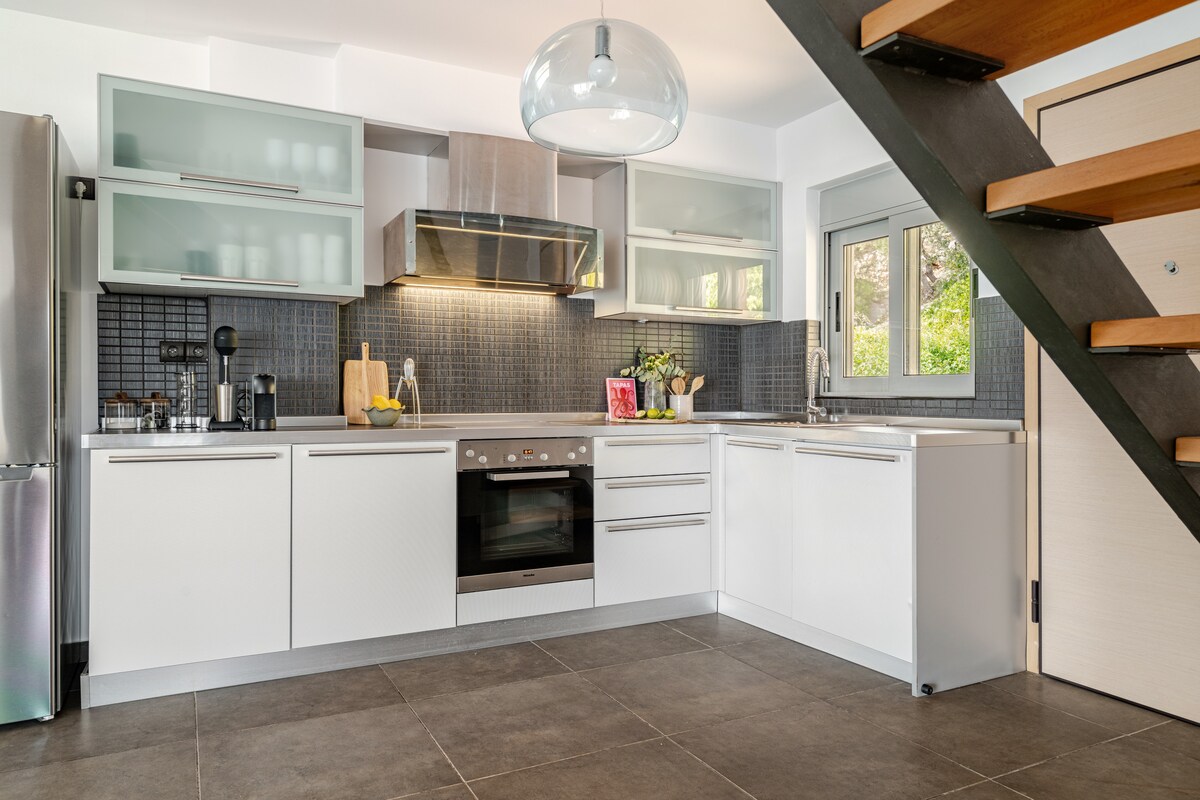 2 間臥室海濱度假屋,最適合 4 至 5 人入住,可直接前往私人海灘,位於俯瞰大海的寧靜環境中,距離雅典國際機場 1 小時 15 分鐘車程。房子可欣賞海景,經過翻新,設計和裝潢專業。請注意: 如果您想要的日期不可預訂,請查看我的其他房源,這是兩個全新的房源,與此房源相鄰!