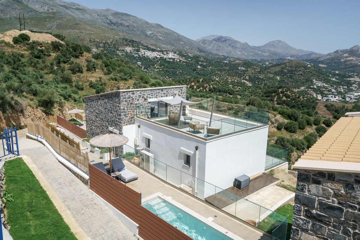 在明亮的地中海陽光下放鬆身心,享受壯麗的克里特島風景,以及從這座令人驚嘆的別墅欣賞美妙的海景,這座別墅建在神話般的伊達山腳下,坐落在橄欖樹林和綿羊農場之間,在一個安靜僻靜的村莊。