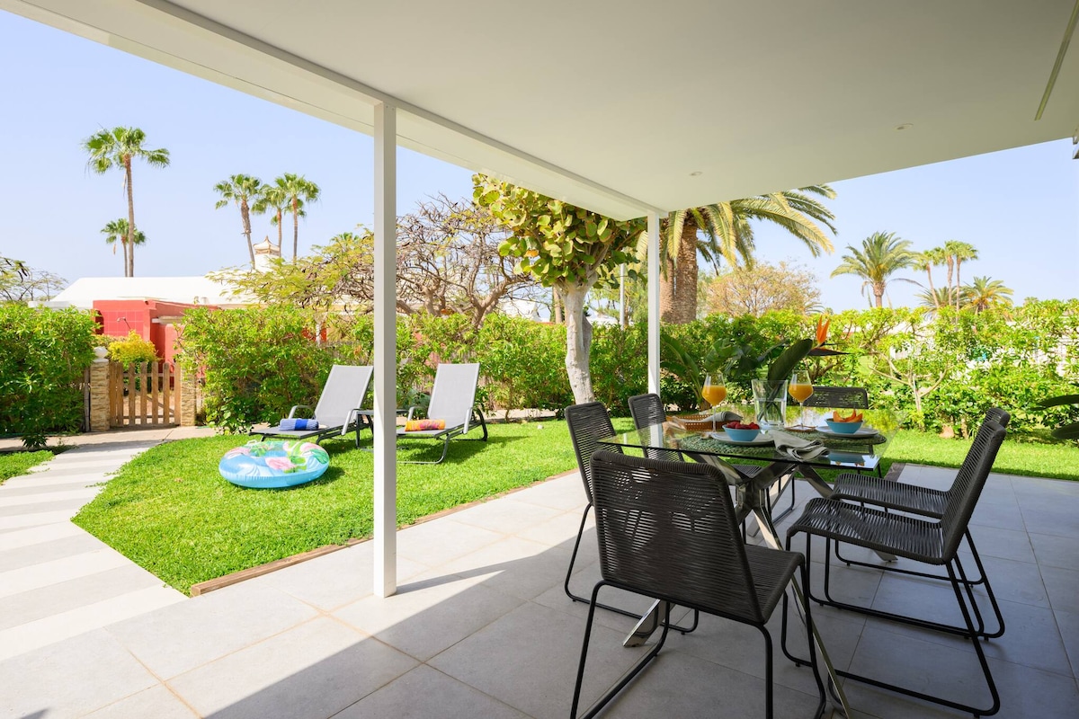 TropicalBlue是一個令人愉悅的別墅,地理位置極佳,步行2分鐘即可抵達梅洛內拉斯海灘,沿著海濱步行20分鐘即可抵達馬斯波洛馬斯的主要海灘。毗鄰高爾夫球場和Masplomas廣闊步道,充滿休閒活動。 大樓有大型游泳池、兒童游泳池和按摩浴缸。 TropicalBlue最多可容納4位旅客,二樓有兩間臥室。您會發現一個美麗的花園,可以放鬆身心、享受日光浴以及在外面享用晚餐。