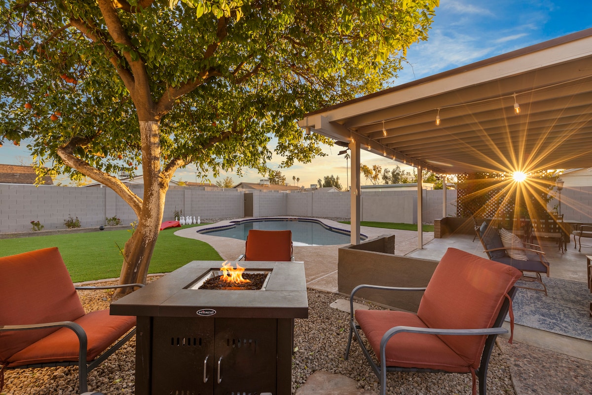 Hygge :舒適舒適愉悅的品質,帶來滿足或幸福感 漂亮的房源,現代化的更新、私人室外空間和貼心的設計感。 -設有圍欄、寵物友善、私人庭院 -專用工作空間,配備外部監視器 - Mason & Hamlin 三角鋼琴 -步行即可抵達適合家庭入住的公園和湖畔步道 - 15分鐘到ASU、Gammage或天港機場 在家中享受舒適的住宿體驗,或探索附近的坦佩、錢德勒和鳳凰城!