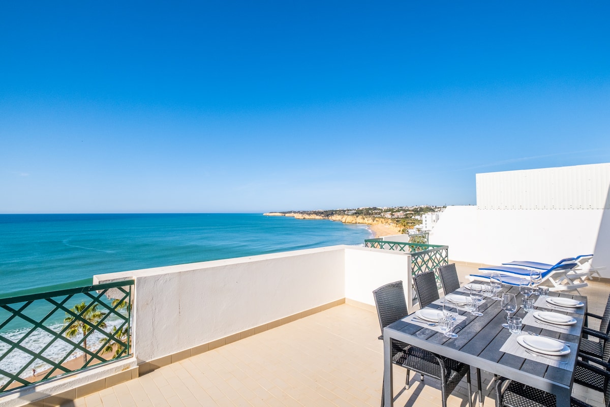 Siete i benvenuti in questo stupendo attico appena rimodernato (agosto 2019) su due piani in cima a uno dei più alti palazzi fronte mare. Godrete di una vista spettacolare sulle spiagge, sulla passeggiata e sul caratteristico paese di Armação de Pêra. La posizione assolutamente favorevole all'inizio dell'isola pedonale vi permetterà sia piacevoli passeggiate lungo costa sia di attraversare la strada e accedere direttamente alla spiaggia libera.