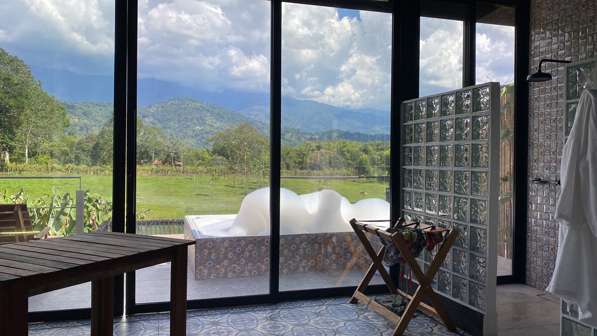 Sumérgete en la tranquilidad de Calarcá, Quindío. Nuestra suite exclusiva te espera con un jacuzzi privado para un descanso total. Disfruta un ambiente acogedor con encanto rústico y una vista inigualable a las verdes montañas del Quindío. Ubicados estratégicamente cerca de atracciones icónicas: Parque del Café, Panaca, Mariposario y a un paso de Salento y el Valle de Cocora. Relájate en esta escapada única y tranquila. ¡Tu escape romántico ideal en el corazón del Eje Cafetero te espera!