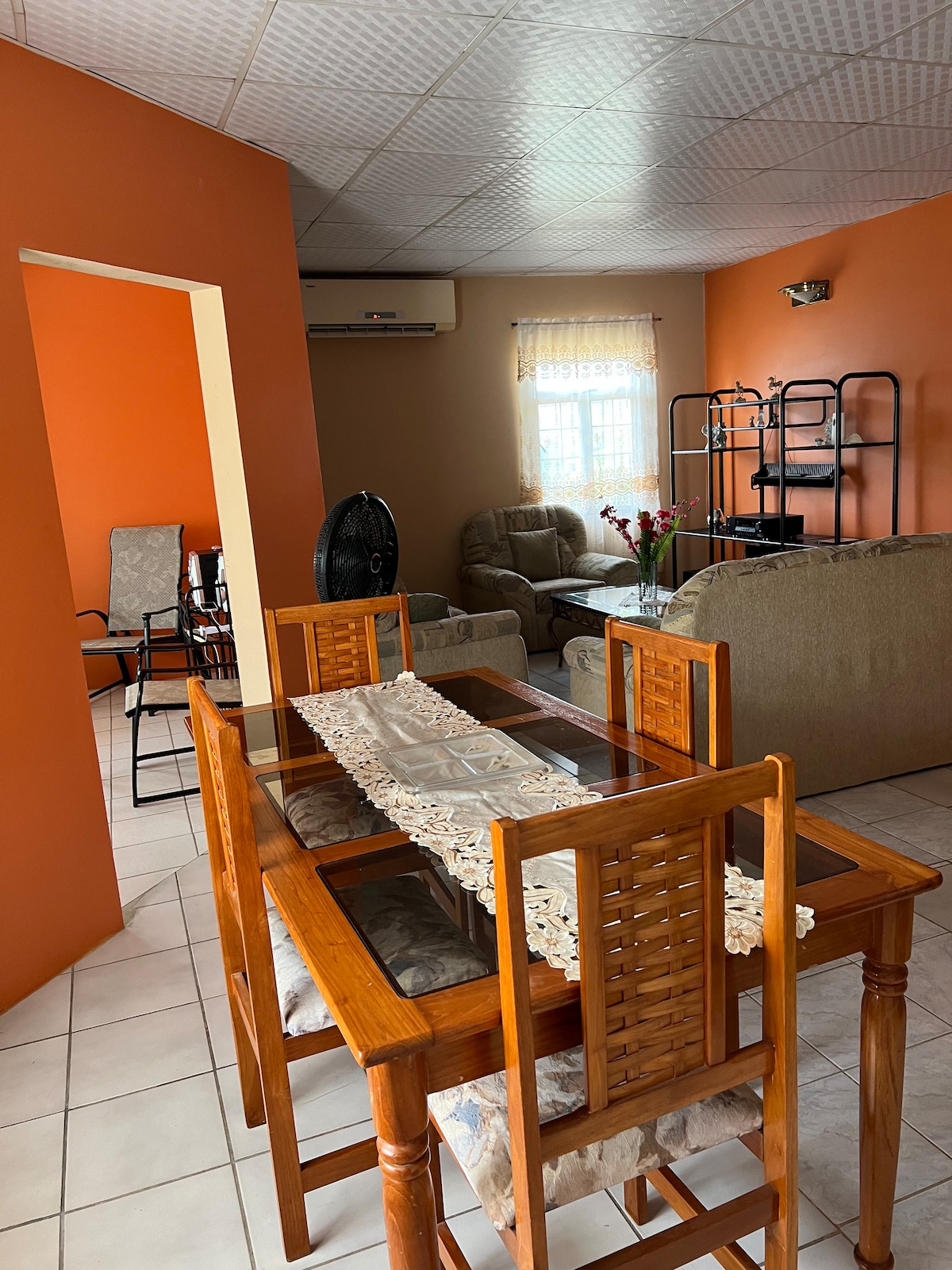 This well appointed newly renovated house is your home away from home. Featuring a complete Kitchen, 2 Bathrooms, Convertible Sofa, Complete Washroom, AC, WiFi, Smart Televisions. Located in a very quiet and safe residential neighborhood in the Trincity area less than 5 minutes away from Piarco international Airport and literal walking distance from everything else you could possible need. Including Trincity Mall, Starbucks, Fridays, Linda's Bakery, Superpharm Pharmacy and many more.