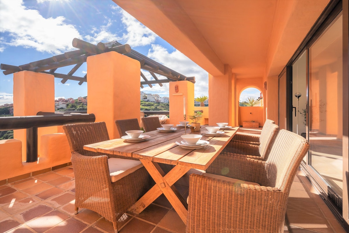 Andalucian Rental Licence: VUT/MA/78619D. Our renovated penthouse has amenities opposite, is a 10 minute stroll to Duquesa Marina, the beach and the traditional Spanish town of Sabinillas. A fab base to explore the Western Costa del Sol from Malaga, Marbella, even Morocco! At Casa Océano Duquesa you'll wake up to panoramic vistas of the Mediterranean and mountains. Relax on the sun bathed terrace, whip up a gourmet meal , delight in the spa style bathrooms and sleep in a sumptuous bed.