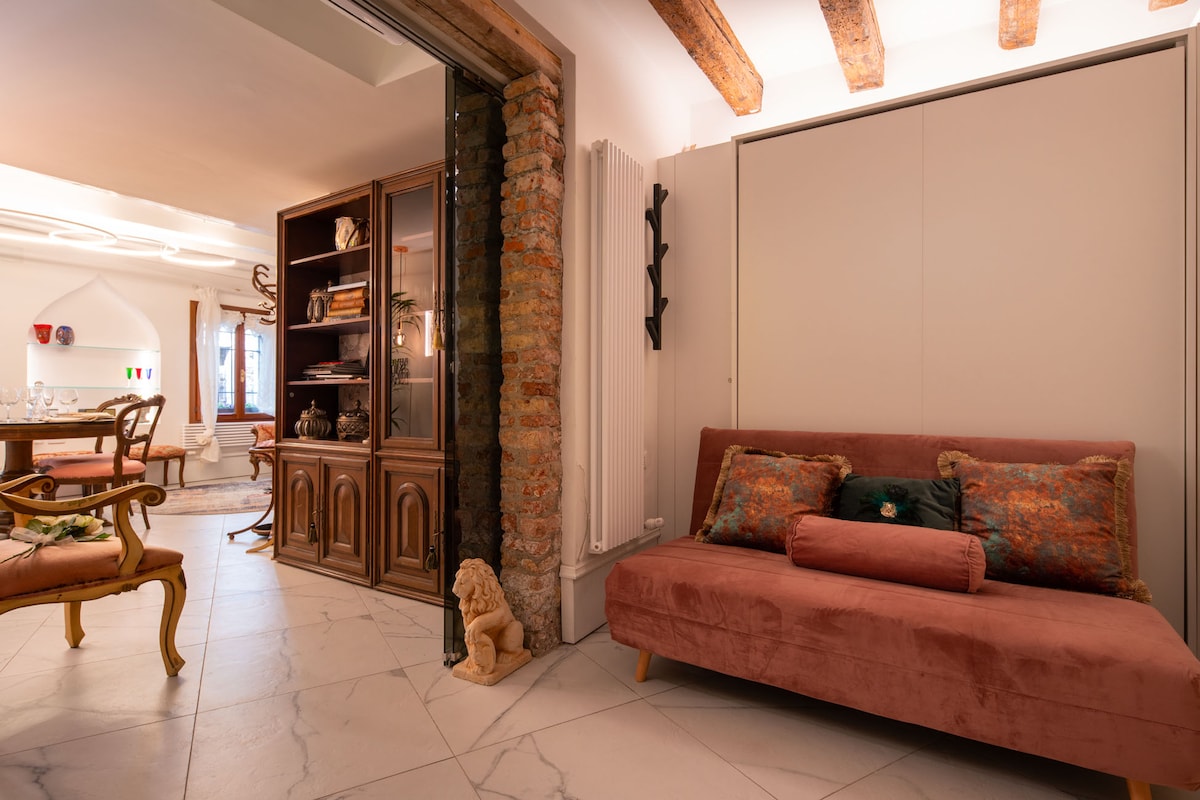Cozy up with a book, have breakfast and dinner while admiring the incredible view of the bell towers and canals of Venice, live like a true Venetian in the most typical district of Venice a few steps from the Rialto bridge, Ca' D'oro and San Marco in a apartment finished with furniture and ornaments made by Venetian and Murano artisans. You will feel like you are experiencing the fantastic atmosphere of the 1800s but with all the comforts of a modern apartment. Don't miss this amazing experience
