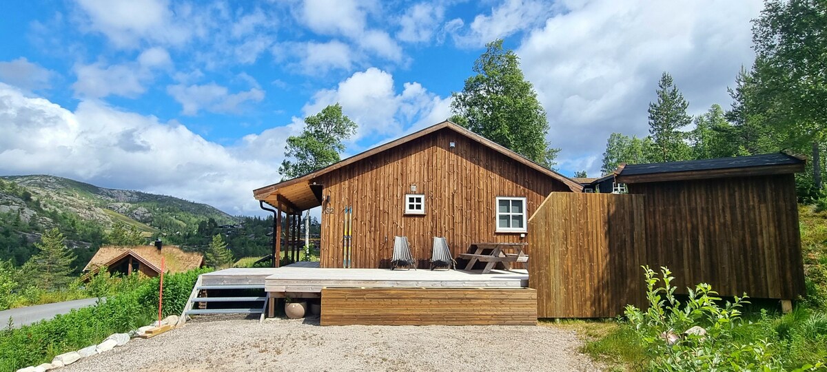 歡迎來到我們在Bortelid的舒適山間小木屋! 在這裡,您可以全年享受安靜的環境、新鮮的山間空氣和絕佳的徒步旅行機會。 小木屋設計時尚,有足夠的空間可供家人和朋友入住。 我們的小木屋提供溫馨舒適的氛圍,配備舒適住宿所需的一切設備,無論您是想滑雪、在山上健行,還是只想欣賞壁爐和美景。 越野滑雪坡位於小木屋外面,步行即可抵達商店、滑雪中心和該地區的漂亮游泳機會。