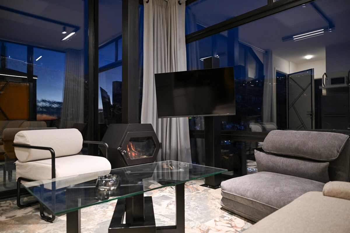 能源別墅位於山脈、森林和雄偉的巖石相遇的地區,讓您充分沉浸在大自然中。 其輕鬆的美學、柔和的調色板和開放式玻璃設計融合在其戲劇性的環境中,為您提供獨特的體驗,植根於與大自然和周圍山脈景觀的無與倫比的聯繫中。