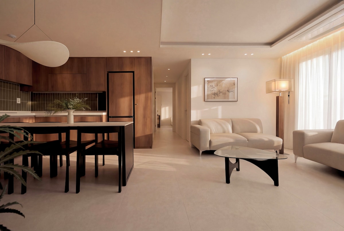 您好。 這裡是一個由濟州住宿顧問親自規劃與經營的翻新空間。從建築動線到每一盞燈光,我們都細心調整,希望呈現出放鬆、沉穩又溫柔的氛圍。寬闊的海景、藝術作品、木質家具與柔和燈光交織,讓兩個人可以像在私人的小咖啡館裡聊天、休息,享受屬於彼此的寧靜與陪伴,以及珍貴的時刻。 這個地方的起點,是一句話:「想打造一個能真正住在濟州的地方。」 因此,我們選擇不浮誇、不喧鬧,而是回到最簡單、最舒服的生活方式。清晨,拿著自動咖啡機沖出的咖啡,站在窗邊,看著大海與法還村,讓時間慢慢流動,是一天最美好的開始,也是最放鬆的時刻。 旅遊或散步回來後,您能在隔音良好的空間裡放鬆身心。坐在沙發上讀書、聽音樂、看電影,或只是靜靜坐著,都能感受到安定與安心。燈光隨著傍晚變得更柔和,房間也彷彿跟著沉澱,整個空間變得安靜、溫暖而舒適。 傍晚時分,夕陽落在海面上,遠處的小島變成剪影,海水染成金色與橙色。與喜歡的人舉杯紅酒,看著日落,是旅程中最美好而浪漫的片刻,會留在心裡許久,成為再次想回來的理由。 我們用心準備每一個細節,希望這裡能讓您與珍惜的人度過溫柔、安靜而難忘的時間。 期待在濟州與您相遇,再次歡迎您回來。謝謝。