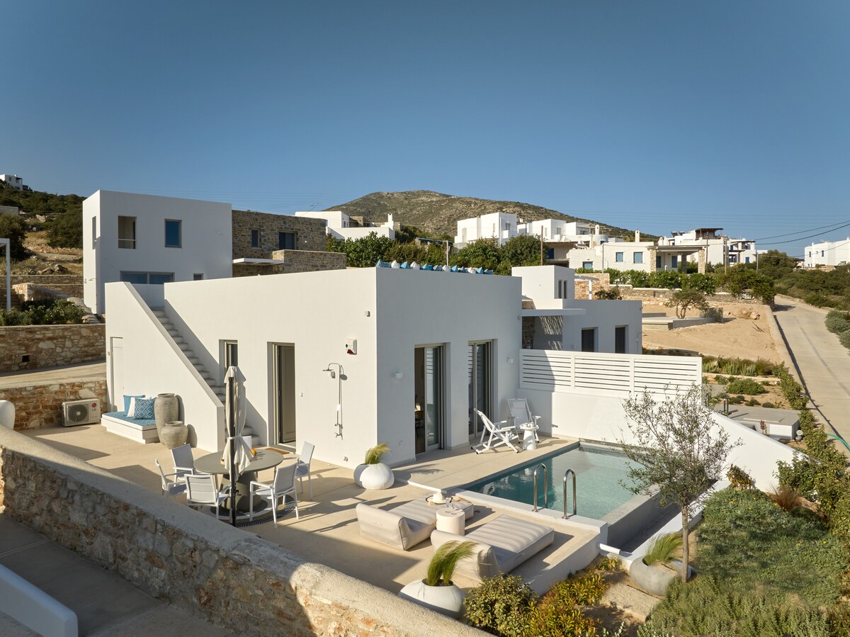 這座最先進的 3 間臥室別墅坐落在風景優美的奧爾科斯山上,配有私人泳池,可欣賞到令人驚豔的海景和令人驚嘆的日落景觀,讓你永生難忘。由於地理位置優越,Naxea Villas 奇妙地結合了愛琴海的寧靜與島嶼山景的清新力量,為家庭、情侶、團體和數位遊牧民族提供神奇的目的地,並提供機會在舒適、奢華和真實的典範中體驗納克索斯。