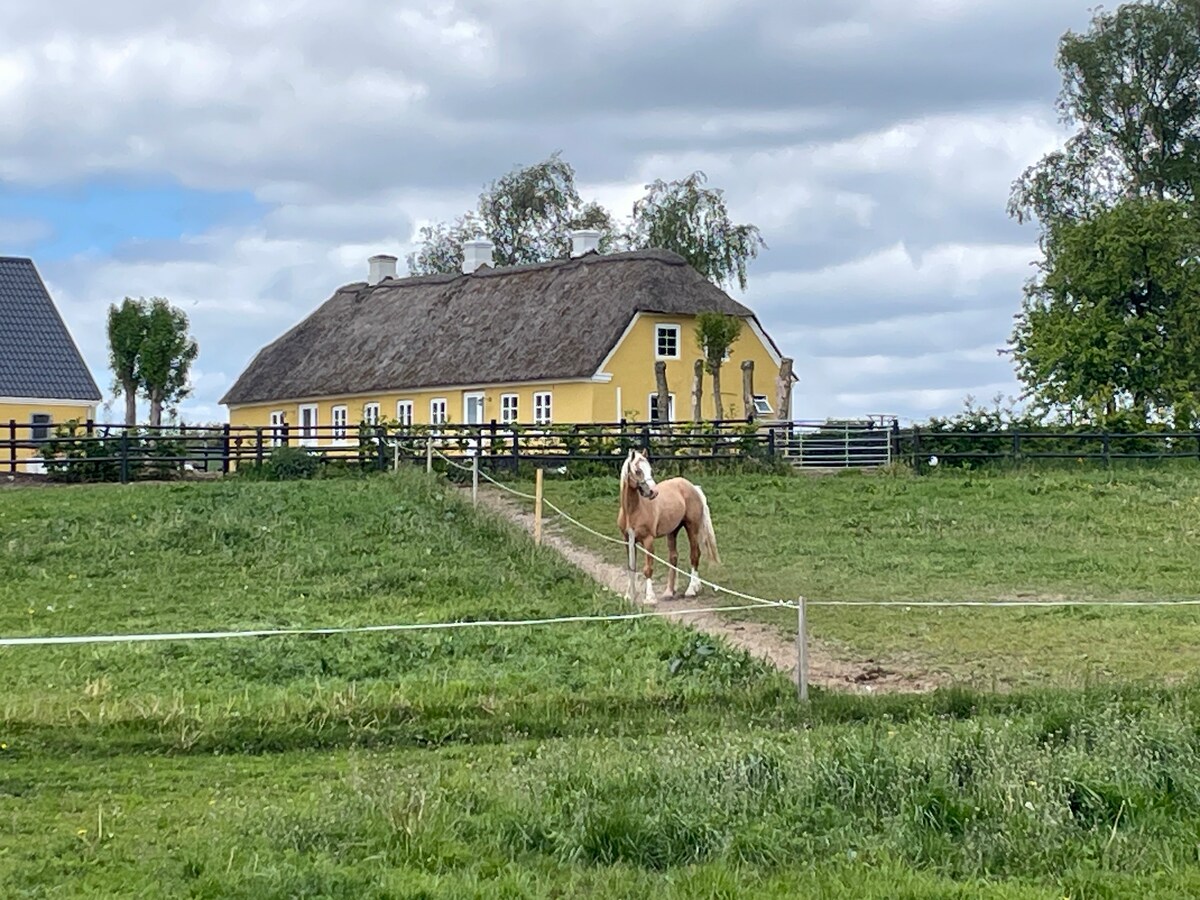Ferielejlighed på 1. sal af vores nedlagte landejendom. Den er ca. 30m2. Her er dobbeltseng (160x200), lænestole, sofabord og TV. Spiseplads til 4 og et lille køkken med køl, frys, kogeplader, mikrobølgeovn, kaffemaskine, elkedel mm. Samt et badeværelse med bruser. Lejligheden er aflåst til resten af boligen, og har sin egen tagterrasse hvorfra der også er egen indgang. Fri wifi. Vi har 2 fjordheste, høns, geder og en sød udekat. Leje af fold til medbragt hest muligt.