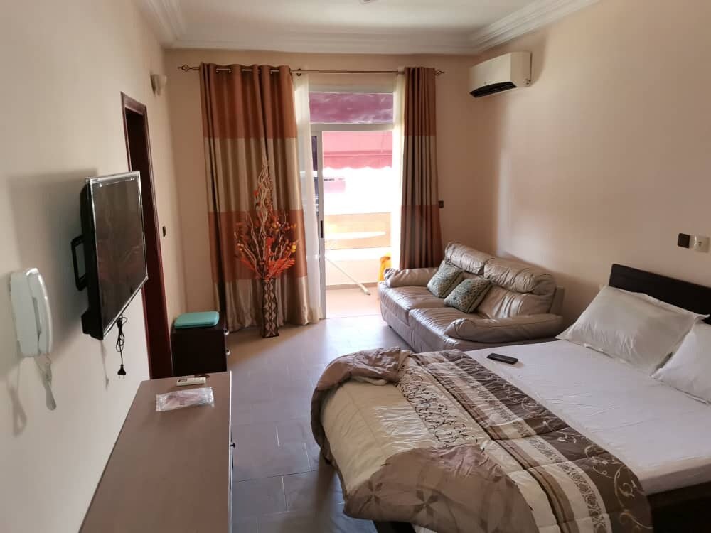 我們家具齊全的公寓向所有人開放! 家人 朋友 同事 社區 等等 我們有7間豪華公寓 和2間套房 全部在同一棟物業 提供所有設備與服務 -歐洲(Eau chau) -空調 - SAT運河 -等離子畫面 -冰箱 -微波爐 -煮水器 房源內還有一家餐廳 我們位於Grand Bassam手工村。
