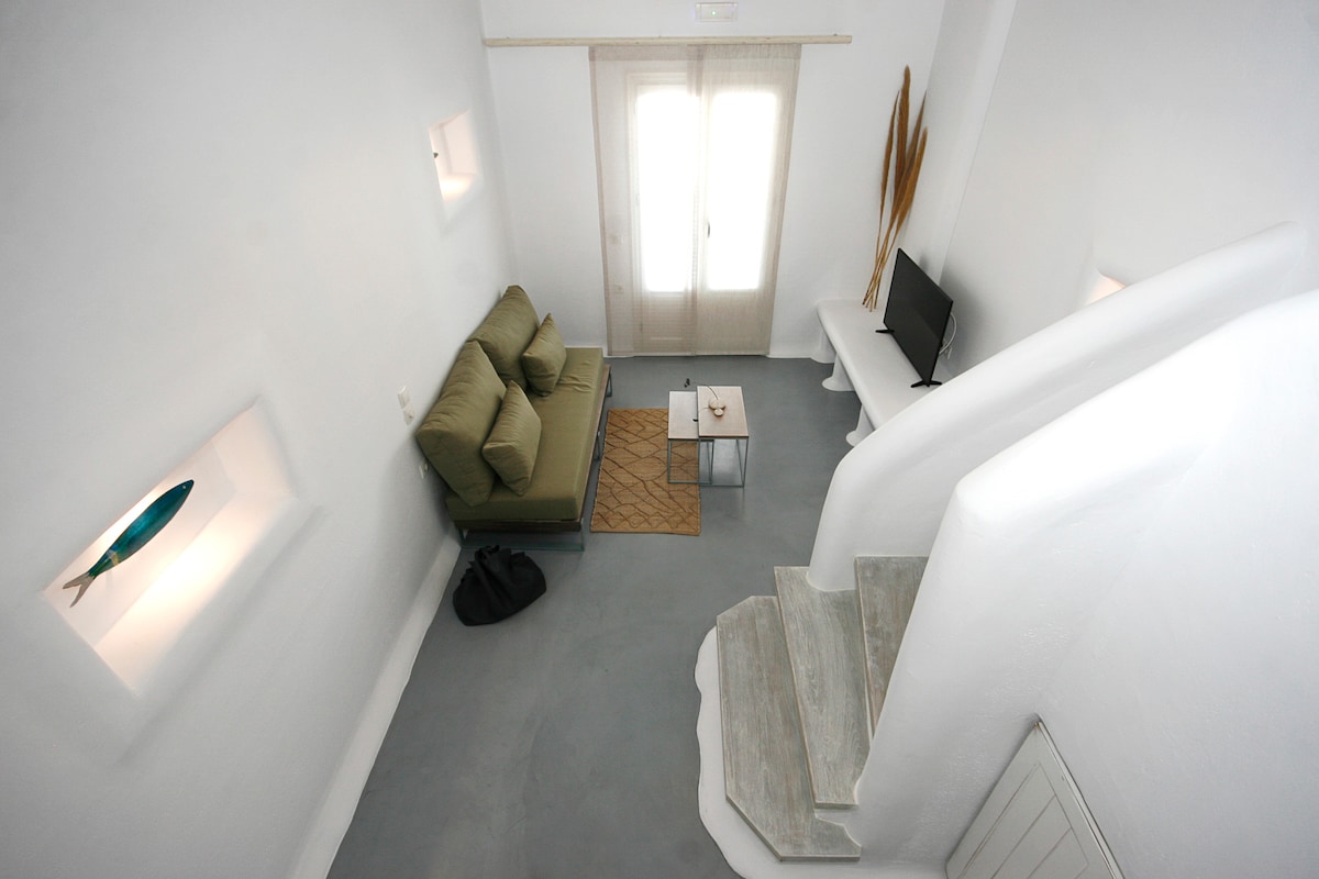 豪華單間公寓位於大樓一樓,配備優雅、裝潢齊全的單間公寓。配有雙人牀、書桌和衣櫃,配有全身鏡、設備齊全的小廚房,配有冰箱、美食櫃和凳子,以及配有淋浴間的豪華浴室。 旅館直達佩拉吉亞羅斯海灘邊緣的院子,俯瞰獨一無二的Chora和威尼斯城堡。