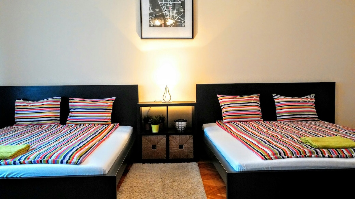 這間全新翻修的裝飾式公寓坐落在市中心,毗鄰布達佩斯的Dohány街。 非常適合家庭、情侶或單身旅客尋找安靜的地方,享受您自己的舒適。 公寓配有各種舒適設施。 便利設施: -允許吸煙 -電視 -有線電視 -無線網路 -中央暖氣 -洗衣 機-烘乾機 -廚房 -大型猶太教堂(或「Dohany Street猶太教堂」)中的電梯, 是布達佩斯的主要景點之一,這是歐洲最大的猶太教堂。 著名的廢墟酒吧,如Instant咖啡館、Szimpla花園、Grandio或Ellato Kert ,只需步行幾步即可抵達。 公共交通非常好,步行5分鐘即可抵達有軌電車47/49 ,例如Astoria的地下。 入住3晚以下,需額外支付清潔費( 15歐元)。 跨年夜時期的價格最多4人有效,最少住宿4晚。