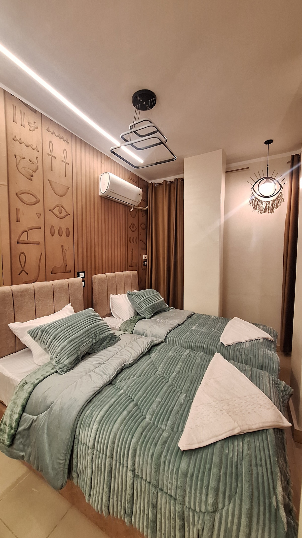 02間臥室,有全湖景露臺,步行幾分鐘即可抵達阿布辛貝勒寺廟和市中心,02間浴室,全空調、電視、WIFI、閉路電視、設備齊全的廚房、乾淨、舒適,非常適合全家入住