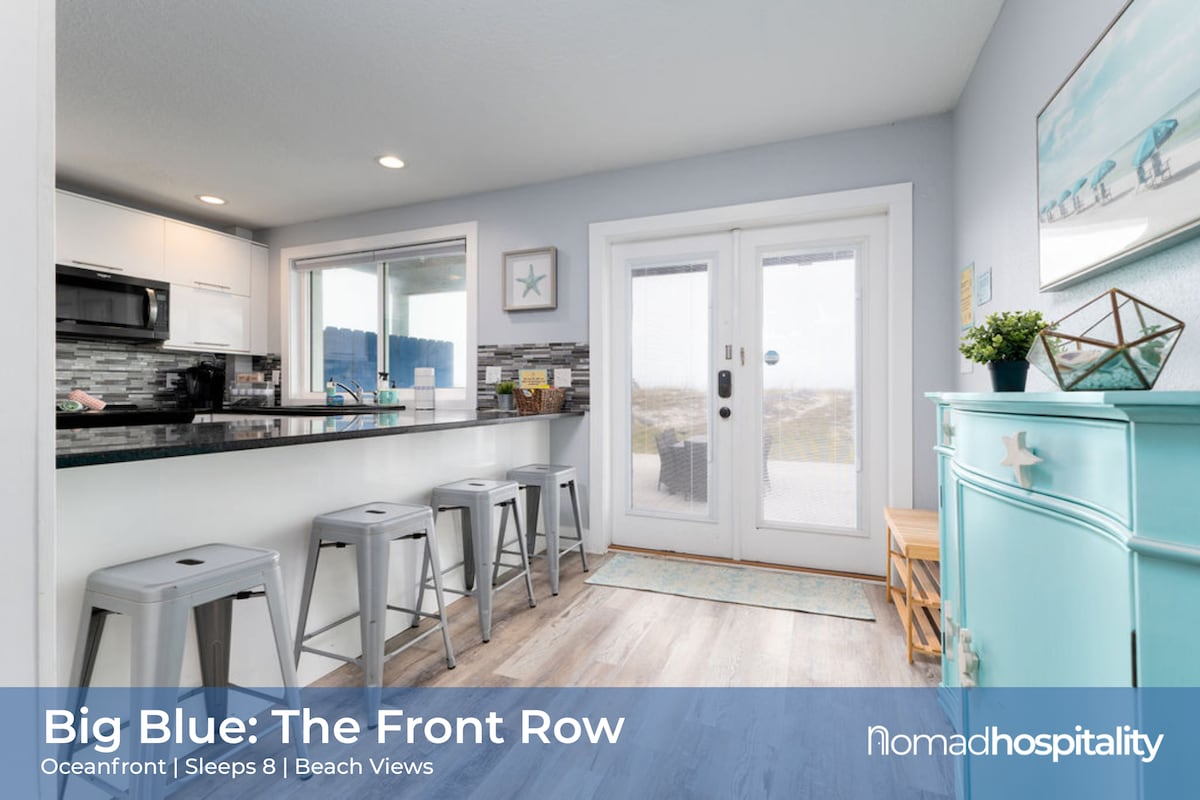 Welcome to The Front Row — oceanfront luxury steps from the sand in Jacksonville Beach! This ground-floor apartment sleeps 8 with direct beach access and panoramic Atlantic Ocean views from multiple windows.