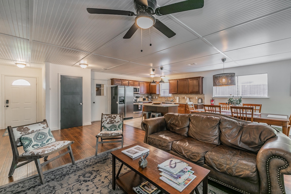 歡迎來到Sun and Oak ,這是一個充滿自然光線的聖地,位於迷人的Elmwood街區,距離充滿活力的Bishop Arts區僅幾分鐘路程。 這間精美的兩房住宅提供了寧靜的度假勝地,房客可以在精美設計的空間中放鬆身心,恢復活力。 請注意:由於我們的清潔團隊需要時間準備房間,因此我們不提供提前入住服務。