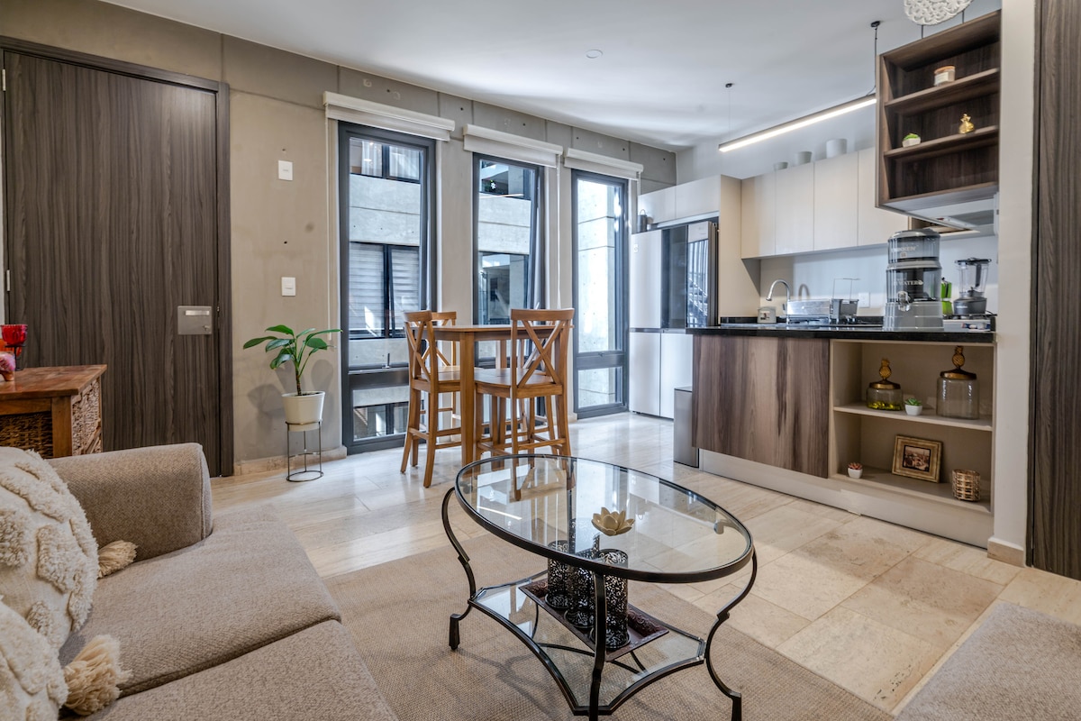 美麗的公寓,坐落在酷炫的Polanco區域。 步行即可抵達許多辦公大樓、餐廳、酒吧、咖啡館和購物商店(高端Masaryk街或安塔拉時尚商場和電影院對面)。步行10分鐘即可抵達Soumaya和Jumex博物館和Jumex博物館、水族館和劇院。 公寓設備齊全,可滿足您的所有需求,配備高品質的家具、遮光百葉窗、免費dolce gusto咖啡、令人驚嘆的屋頂可供舉辦活動,感覺像精品酒店