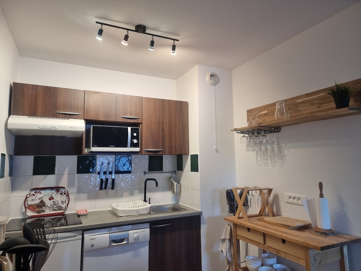 28平方米的公寓,配有陽臺,位於Guzet的山坡腳下,靠近所有設施。 它由兩件物品組成。 設備: WiFi、智慧電視、洗碗機、電磁爐、Senseo。 房間由一張4張牀的雙層牀組成。 客廳有一張可供2人使用的折疊牀,浴室配有浴缸。 住宅:泳池、健身房、1個私人停車位、禮賓、滑雪儲物櫃。40公裏的山坡、餐廳、商店。 這個度假村會吸引您。